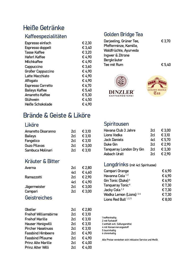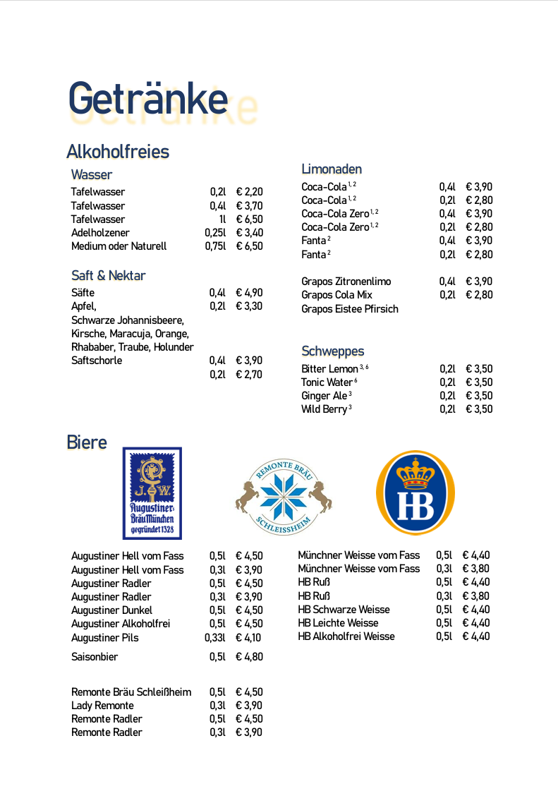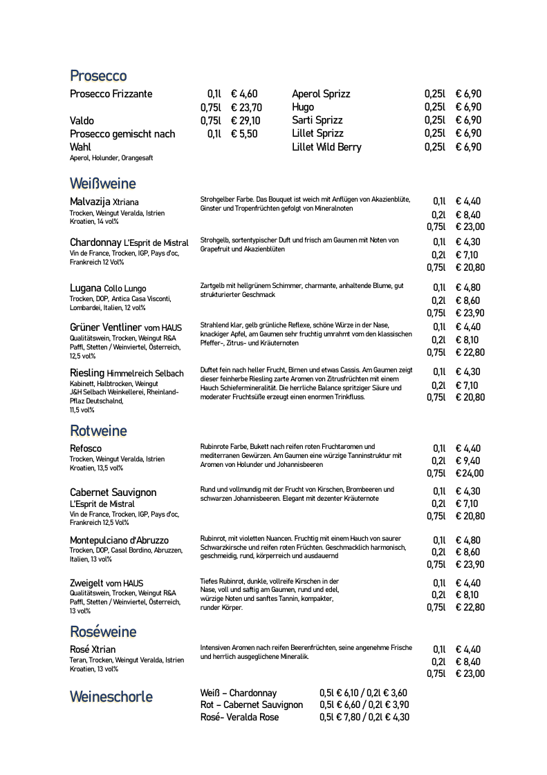 Entdecken Sie unsere vielfältige Speise- und Getränkekarte: Von regionalen Spezialitäten bis hin zu frisch gezapften Bieren und ausgewählten Weinen – bei uns ist für jeden Geschmack etwas dabei.