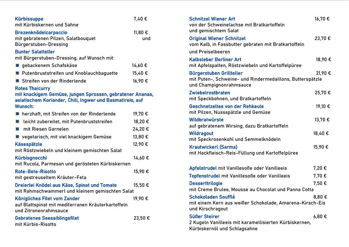 Entdecken Sie unsere vielfältige Speise- und Getränkekarte: Von regionalen Spezialitäten bis hin zu frisch gezapften Bieren und ausgewählten Weinen – bei uns ist für jeden Geschmack etwas dabei.